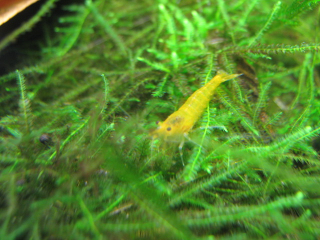 イエローチェリー・シュリンプ!その名の通り、見事に黄色いエビさんです。