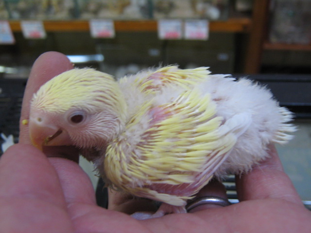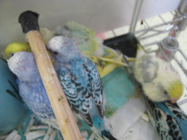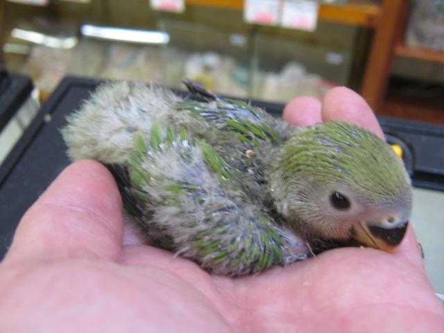 セキセイインコのヒナも連れて来ました!画像では分かりにくいですが、なるべく変わった色のコ、キレイな色のコを選んで来ました!