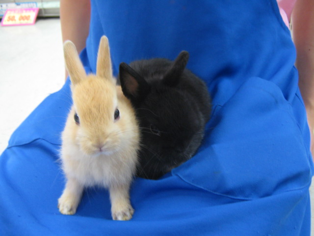 ドワーフラビットも2羽選んで連れて来ました!左のコがオレンジの女の子で、右のコがブラックの男の子です!