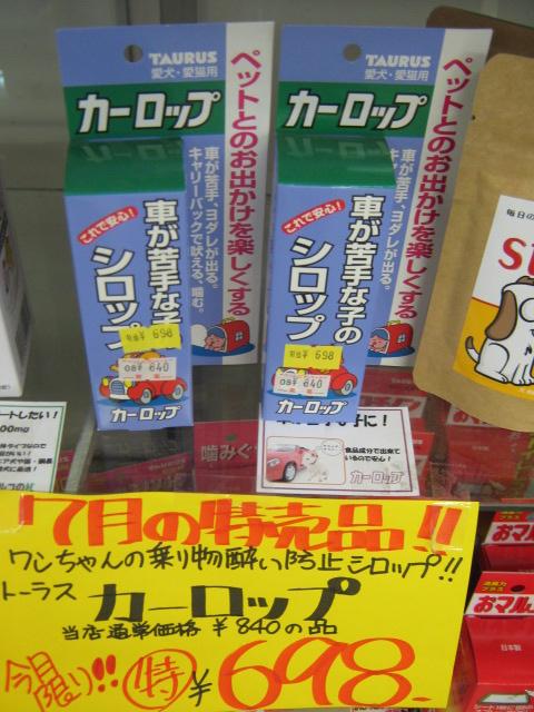 先日、このブログで紹介させて頂いた、ワンちゃんの乗り物酔い防止シロップ! これからお出かけが多くなるシーズンですので、特売に入れさせて頂きました。今月中のみ 特価!! ¥698!!