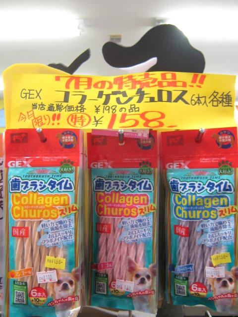 歯ブラシ効果のある、わんちゃんのおやつ!「コラーゲンチュロス」各種 今月は 特価!! ¥158!!