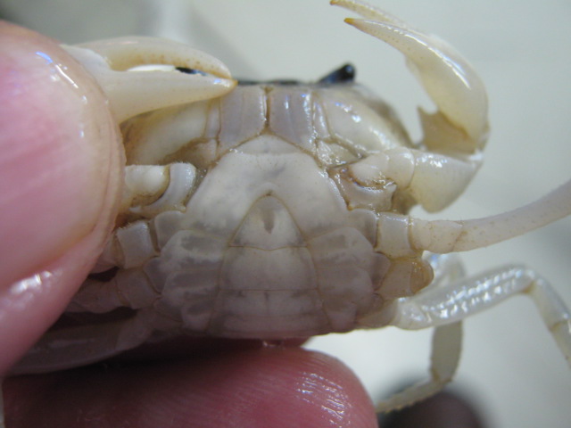 メスはお腹に卵いっぱい抱えるから、お腹のフタ?の幅がこんな風に広いのね。