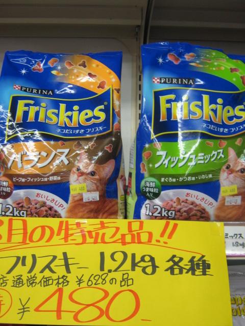 ネコちゃん用ドライフード「フリスキー」1.2kg各種 特価!! ¥480!!
