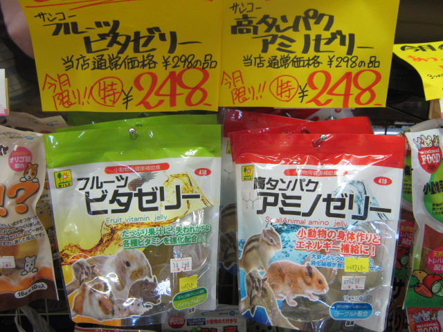 小動物用ゼリー「フルーツ・ビタゼリー」と「高タンパク・アミノゼリー」 どちらも特価!! ¥248!!