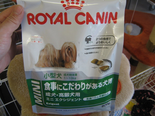 こちら!ロイヤルカナンの「ミニ・エクシジェント」!! 小型犬の成犬~高齢犬用です。
