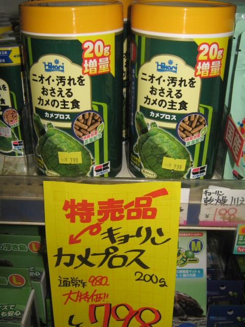 それと只今一番人気のカメのえさ!「カメプロス 200g」特売中