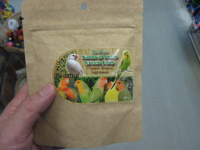 「Dr.ピュア バイタル・コンプレックス」という商品で、鳥さんの健康維持に必要な各種ビタミンやアミノ酸、酵母などを多く含みます。