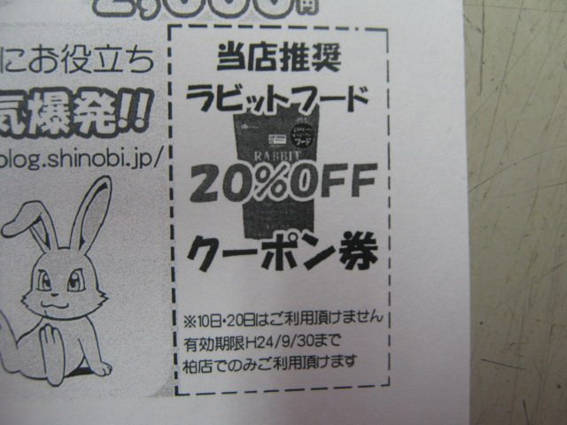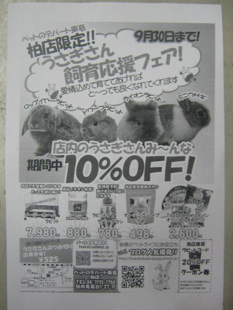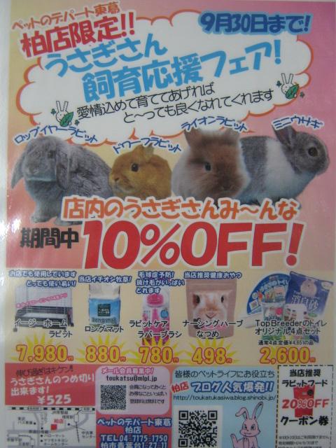 柏店限定!『うさぎさん飼育応援フェア』 いきなりスタートしましたぁ