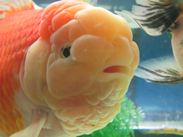 今日の最後はこの画像でおしまい! すごい顔でしょ!? 超デカイ東錦(あずまにしき)っていう金魚のお顔なんです!どうだろ・・・この金魚30㎝くらいあるんじゃないかな・・・。