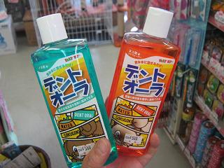 お水に少~し混ぜるだけで歯磨き効果!左の青いのがワンちゃん用で、右のオレンジのやつがネコちゃん用です。