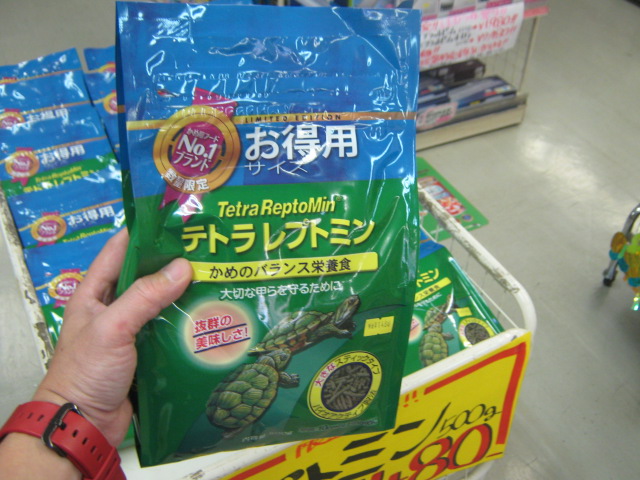 このあいだ、メガネ君が紹介してくれたカメのえさ「レプトミン 500g」!これもオトクですね!