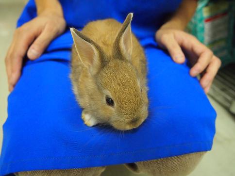 ドワーフラビットの女の子! 先月の「ウサギさん飼育応援フェア」がおかげ様で大好評で、大分ウサギさんが少なくなってしまっていたので、新入り投入です!本当はあと2~3羽、ロップとかミニとかも頼んだのですが、来たのはこのコだけでした。
