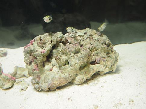 これがなかなかイイ感じ! おお!ミドリフグとライブロックって合うね!