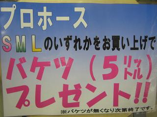 今柏店でプロホースをお買い上げ頂くと、バケツをお1つプレゼントしちゃいまーす