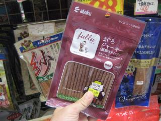 ワンちゃんのおやつ「まぐろジャーキー」。結構人気あります!ビーフよりも人気あるんじゃないかな?特価!!¥198!!