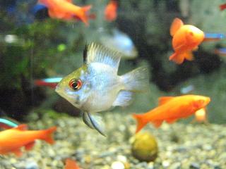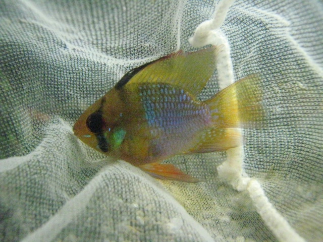 「ドイツアピスト」っていう名前で売られている熱帯魚。飼えば飼うほど色が出てきて、とってもキレイなお魚です。