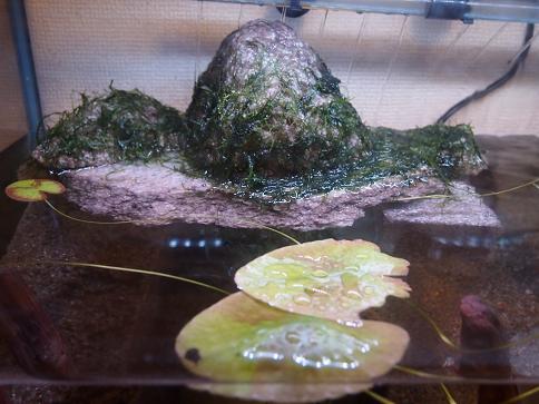 それから、陸地の部分の岩にウィローモスを乗せてみました。これから段々とウィローモスが水上化していい感じになってくるはずです。