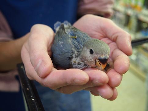 そして、こんなにかわいい小桜インコのヒナもやってきました!色変わりで「バイオレットファクター」っていう色のコです!