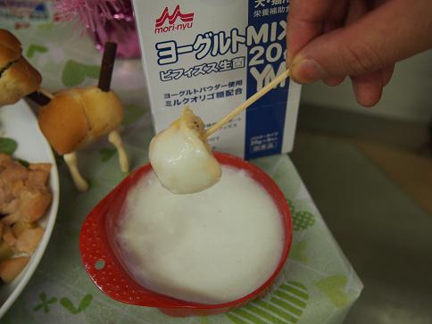 !フォンデュみたいにパンにワンちゃん用ヨーグルトをからめたやつ!